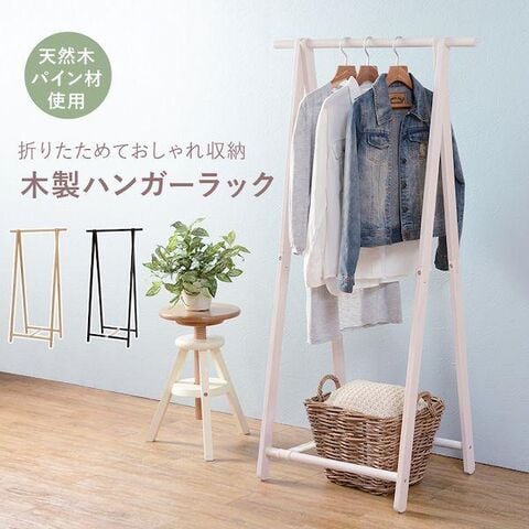 ●必要な時だけ出して、さっと折りたためる天然木ハンガーラック