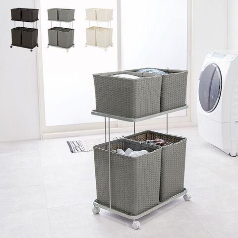 ●色柄物や汚れた洗濯物を分けて溜められるランドリーワゴン。バスケットは持ち運べて便利。