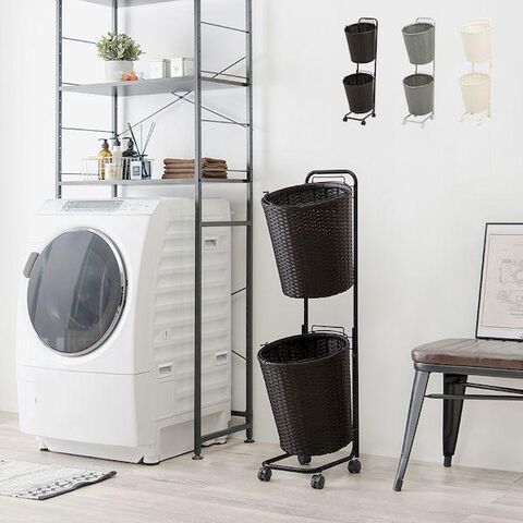 ●色柄物や汚れた洗濯物を分けて溜められるランドリーワゴン。バスケットは持ち運べて便利。