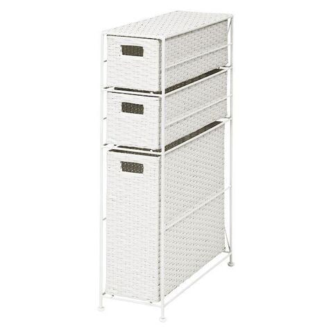 ●隙間に収まるトイレラック。通気性の良いバスケットの引出しにペーパーロールや小物を収納できます。