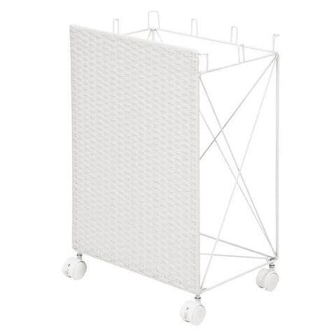 ●ビニール袋をかけて分別が可能なダストワゴン。1面に樹脂を編み込んでおり目隠しになっています。