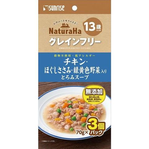 マルカン 4973321940088 ナチュラハ グレインフリー チキン・ほぐしささみ・緑黄色野菜入り とろみスープ 13歳以上用 70g×3個