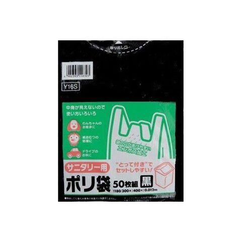 4902393558303 【60個入】 Y16S サニタリー用とって付きポリ袋エンボス黒 50枚 5L相当 100810【キャンセル不可】