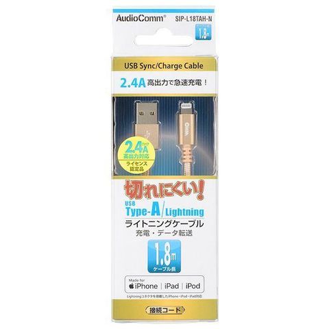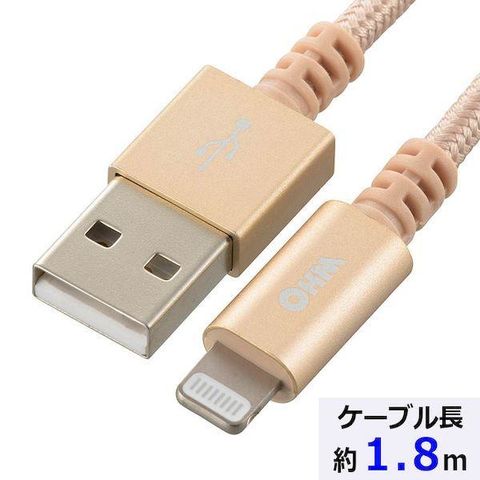 オーム電機 SIP-L18TAH-N 高耐久 ライトニングケーブル USB Type-A/2.4A高出力対応/1.8m SIP-L18TAH-N SIPL18TAHNのレビュー