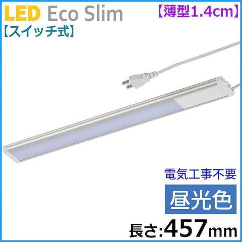オーム電機 LT-NLEST07D-HN スイッチ式 LEDエコスリム 薄型1.4cm 長さ457mm/昼光色/700lm LT-NLEST07D-HN LTNLEST07DHN