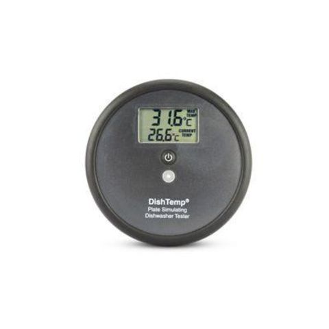 ●温度計DishTempは、食器洗浄機の中にいれ、洗浄中の最高温度を測定できるようにデザインされた新しいタイプの温度計です。DishTempの形状は、皿状で、食器洗浄機のラックに入れるようになっています。
