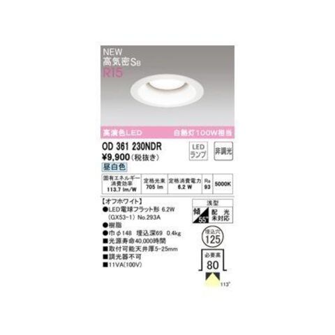 オーデリック ODELIC OD361230NDR ランプ別梱包