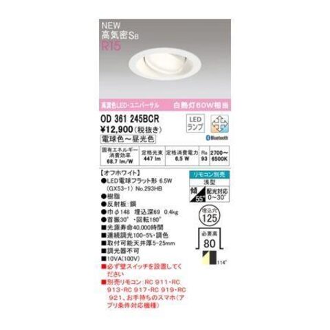 オーデリック ODELIC OD361245BCR ランプ別梱包