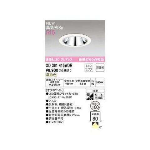 オーデリック ODELIC OD361415WDR ランプ別梱包