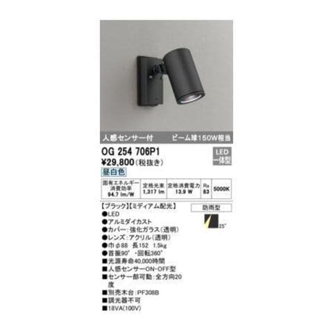 オーデリック ODELIC OG254706P1 防雨型LEDスポット