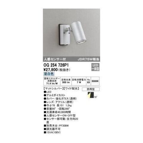 オーデリック ODELIC OG254726P1 防雨型LEDスポット