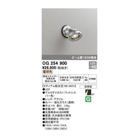 オーデリック ODELIC OG254900 防雨型LEDスポット