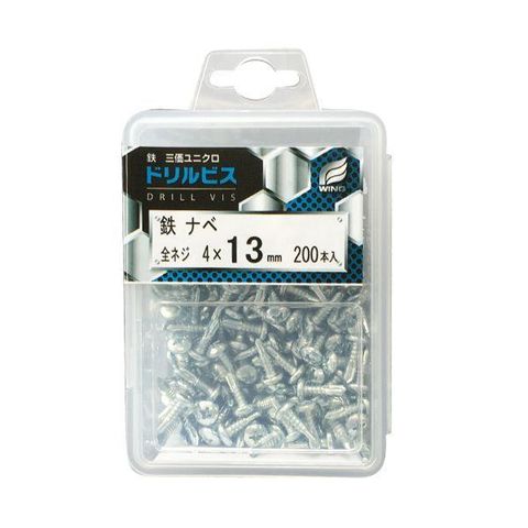 ウイング 4938780042285 4228 鉄下地用ドリルビス 鉄 ナベ 全ネジ ダクロ プラケース入 サイズ:4×19mm 115入