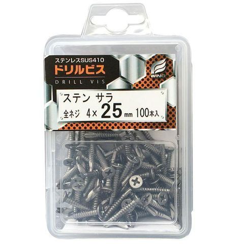 ウイング 4938780043091 4309 鉄下地用ドリルビス ステンサラ 全ネジ プラケース入 サイズ:4×35mm 80入