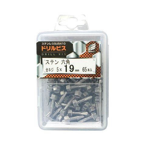 ウイング 4938780045828 4582 鉄下地用ドリルビス ステン六角 プラケース入 サイズ:6×19 45入