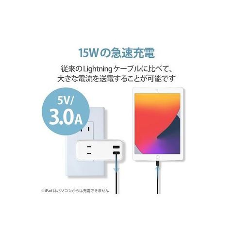●iPhoneやiPod、iPadなどのLightningコネクタ搭載機器とUSB-A端子を搭載しているパソコンを接続し、充電・データ通信が可能なLightningケーブルです。*iPadはパソコンからは充電できません。