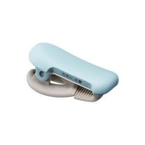 はさむだけでテープにセットできるテープカッター。簡単に付け替え出来るので複数のマスキングテープに使えて便利です。コード:6432-3121。
