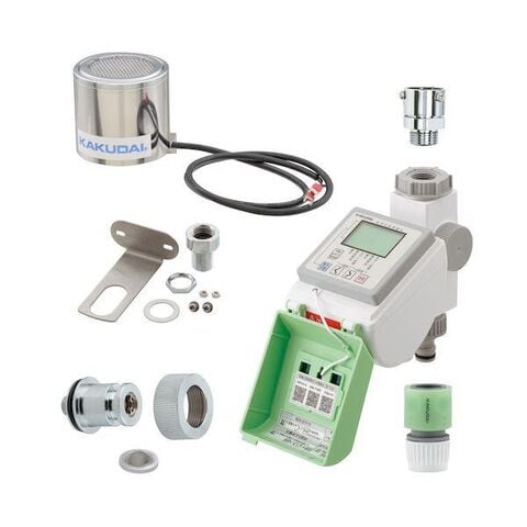 ●蛇口に取付け、時間などを設定しておくと自動で水やりを行うタイマー(ソーラー発電式)と雨センサーと凍結防止エレメン