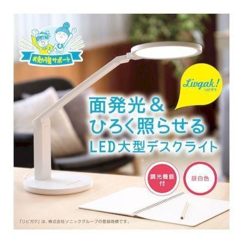 ソニック LV-4698-W リビガクLED大型デスクライト 調光機能付 面発光&ひろく照らせる ホワイト LV4698W