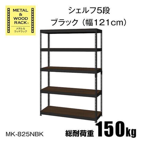 MK-825NBK 直送 代引不可 シェルフ5段幅121cm METAL & WOOD RACK ブラック MK825NBK