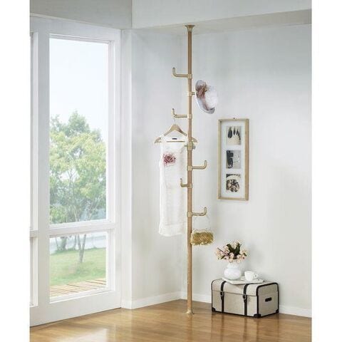 ポールの足元は約8cmの円盤型を採用しているため、お部屋の隅や玄関先、洗面所、脱衣所など、狭いスペースも有効利用できます。 【商品仕様】サイズ:高さ170~280cm 最大直径32cm