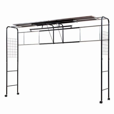 JKプラン UNI-0001-BKBR 直送 ベッド用 ハンガー ラック ベッド上 棚 収納 キャスター付き 伸縮式 上棚 奥行き40 高さ149 ブラック ダークブラウン UNI0001BKBR
