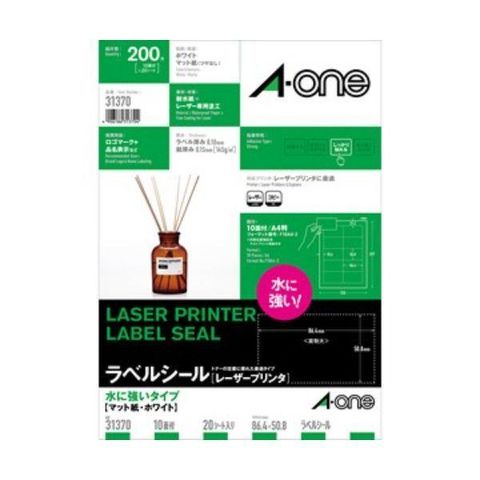 A-one エーワン 31370 ラベルシール レーザープリンタ 水に強いタイプ A4判 10面 四辺余白付