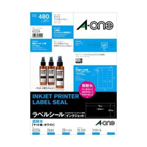 A-one エーワン 62224 ラベルシール インクジェット 超耐水 マット紙 A4判 24面 上下余白付