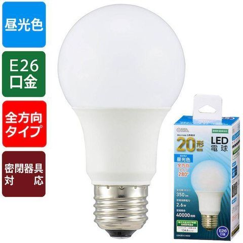オーム電機 LDA3D-G AG52 LED電球 20形相当/350lm/昼光色/E26/全方向280°/密閉形器具対応 LDA3D-G AG52 LDA3DGAG52