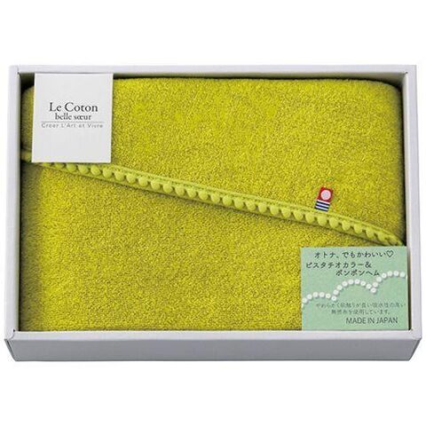 大人っぽいピスタチオカラーに可愛らしいポンポンを付けたタオルです。柔らかくて肌触りの良い無撚糸を使用しています。深めの化粧箱に入れることで、タオルが立体的に見えます。