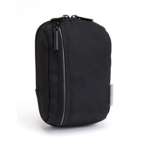 少し大きめのズームコンパクトカメラまで入る、充分な収納力のスタンダードポーチ。正面部にはメモリーカードなどが入れられるファスナー式ポケットがついています。