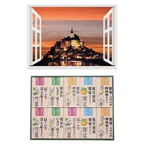 【個数:1個】B6133529+8100444 直送 代引不可 昭プラ お風呂のポスター 世界遺産 モンサンミシェル + 薬用入浴剤ギフトセット
