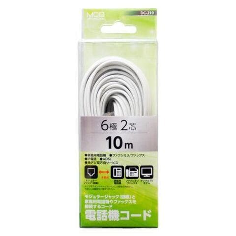 【個数:1個】DC-210/WH 直送 代引不可 ミヨシ 電話用モジュラーコード 6極2芯 白 10m