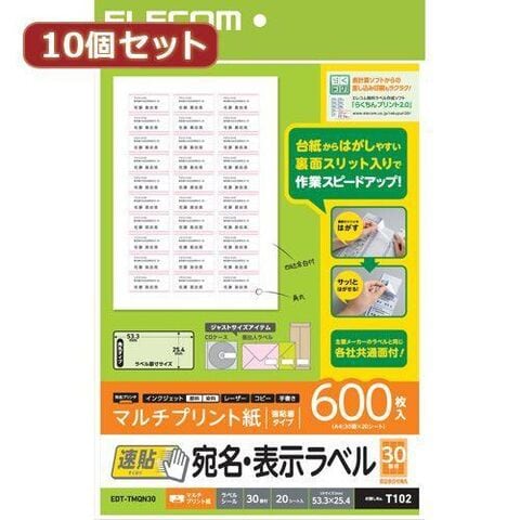 【個数:1個】EDT-TMQN30X10 直送 代引不可 10個セットエレコム 宛名・表示ラベル 速貼 30面付 53.3mm×25.4mm 20枚