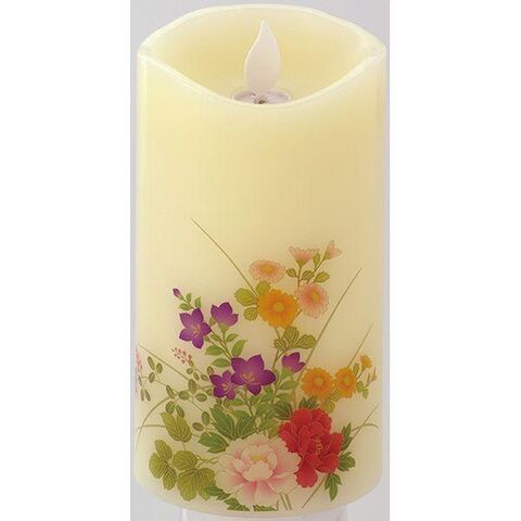 本物のロウを使ったリアルな質感と、自然な炎のゆらぎを再現したLEDローソク。 やさしい色合いの蓮が、見る人の心を和ませます。 対で使えば盆提灯としてもお使いいただけます。