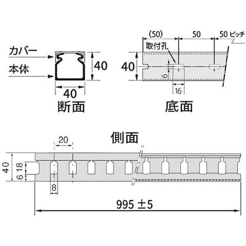 ●通線孔の周囲は面取り加工を施しているため、ケーブルの外皮を傷つけにくい