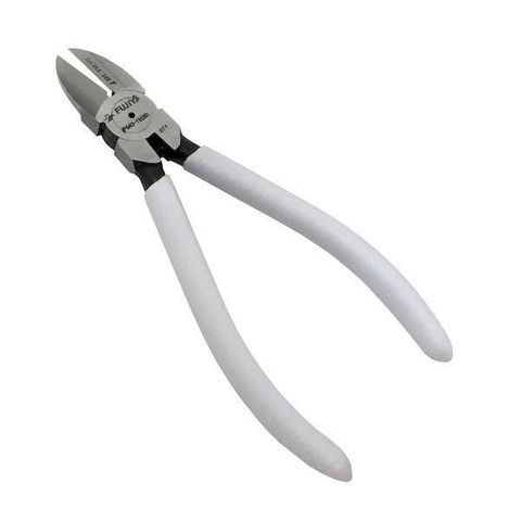 ●片方にしか刃が付いていないタイプで、樹脂の片側を押さえて切ることができるので、特に硬い樹脂(エンプラ)などを切断した後にバリが残りにくいです。