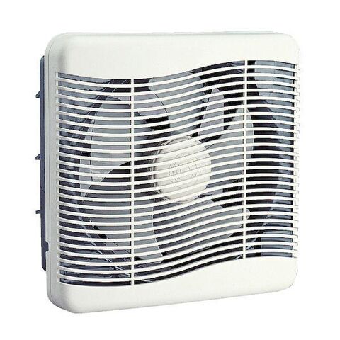 ●居間用電気式シャッター換気扇。和室や事務所にもあう白色の格子パネルタイプ。市販の埋込スイッチに連動するスイッチタイプ。電源コードプラグ0.7m、羽根径25cmプロペラファン