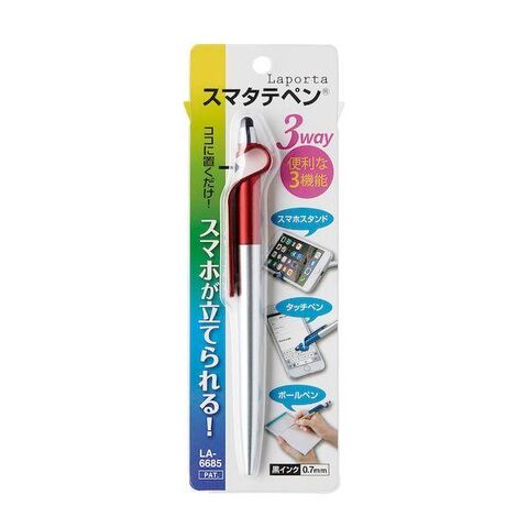セキセイ LA-6685-20 スマホスタンド+タッチペン+ボールペン スマタテペン ブリスターパック レッド LA668520