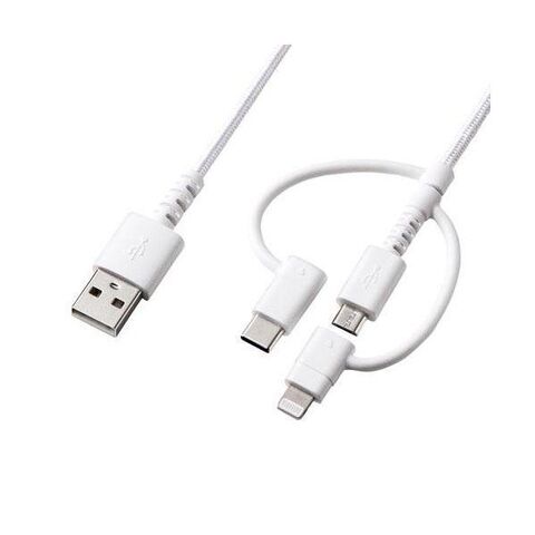 ●2つの変換アダプタ付きで、ライトニングケーブル・USB2.0 Type-Cケーブル・microUSBケーブルとして使用できるUSBケーブルです。