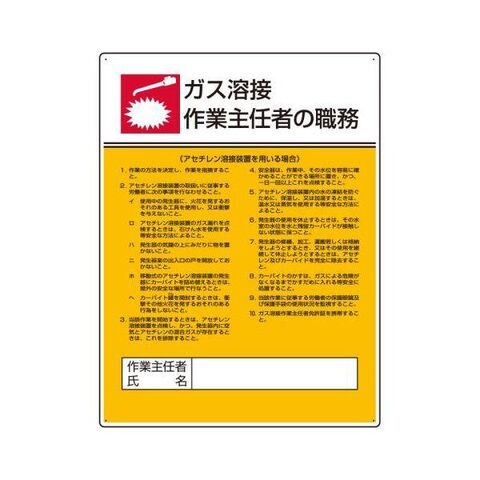 エスコ EA983BX-9 600x450mm 職務表示板 ガス溶接作 EA983BX9