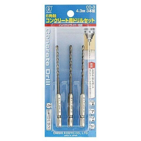 大西工業 024-CD3 6角軸コンクリート用ドリル3本組 No.24 サイズ:CD-3セットmm 3本組 4.3mm×3本 024CD3