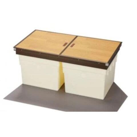置き蓋式です。写真中のフロアー材は現地手配です。