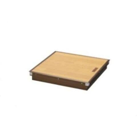 置き蓋式です。写真中のフロアー材は現地手配です。