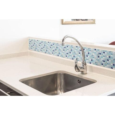 ●10cm×200cm●賃貸住宅でも安心して自分流にリノベーション出来ます。簡単に貼れてきれいにはがせるデコタイルシートです。表面が防水仕様なのでお手入れも簡単です。キッチンや水回りを簡単にイメージチェンジできます。壁紙 貼ってはがせる DIY 明和グラビア