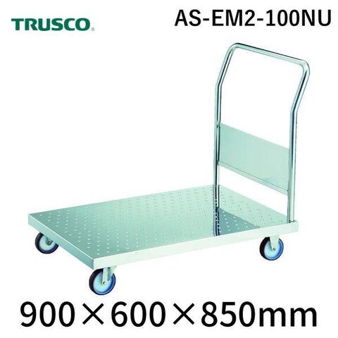 AS-EM2-100NU 直送 代引不可 オールステンレス製運搬車 オールステンレスエンボス天板台車 固定ハンドルタイプ・ナイロンウレタン車輪 900×600×850