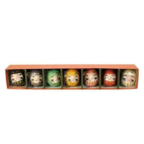 ●幸福を呼ぶラッキーアイテム。●箱ごとディスプレイしていただけます。●サイズ:本体 約φ4×H4.5cm/箱 約36×6×H4.8cm●重さ:約260g●材質:紙●内容:風水だるまさん7色●生産国:ベトナム