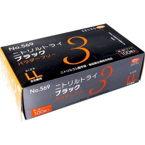 4520951014285 No.569 ニトリルトライ3 ブラック パウダーフリー ニトリルゴム製 使い捨て手袋 LLサイズ 100枚入【キャンセル