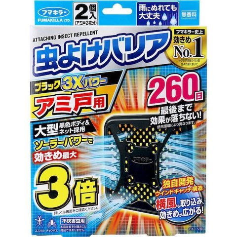 4902424447736 フマキラー 虫よけバリアブラック3Xパワー アミ戸用 260日用 2個入【キャンセル不可】
