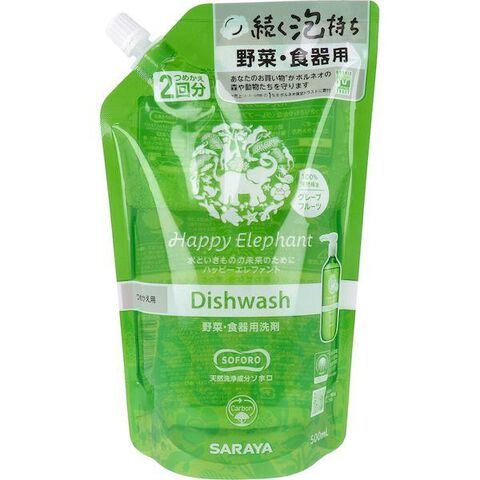 4973512261534 ハッピーエレファント 野菜・食器用洗剤 グレープフルーツ 詰替用2回分 500mL【キャンセル不可】